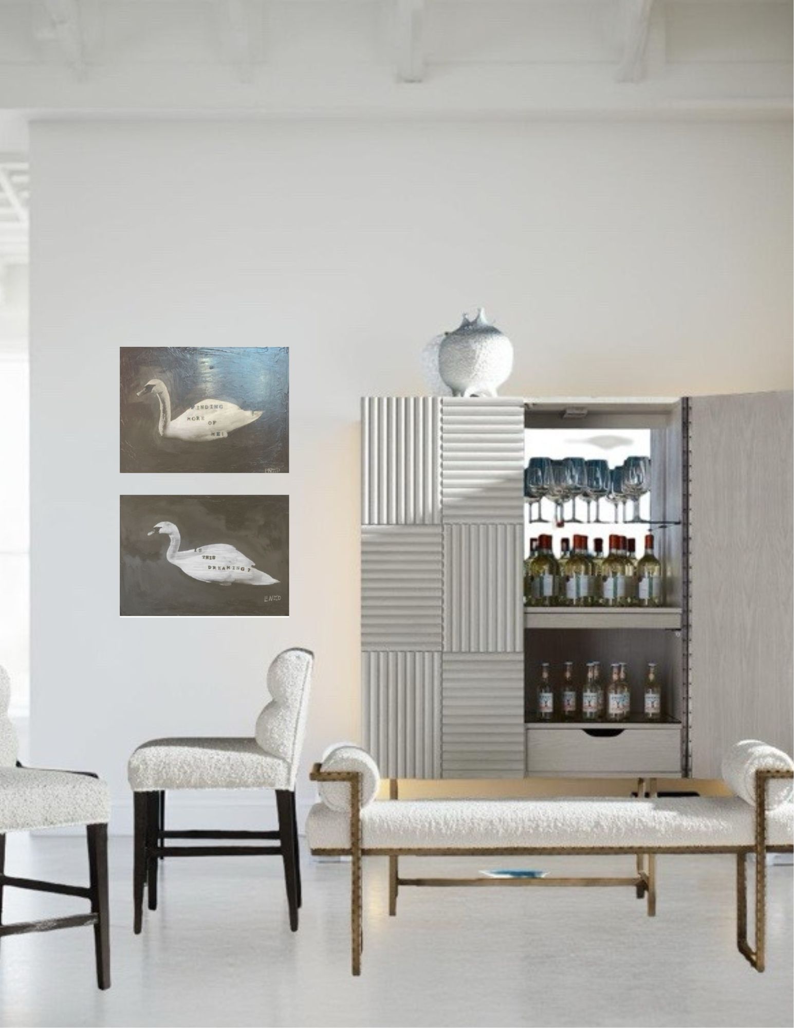 ABOUT LINWOOD: Linwood is a modern abstract artist with an impressive body of work – and an alter-ego. The artist Linwood is South + English’s very own Palmer Smith. A true master of mixed media, Linwood experiments with acrylic, oil, watercolor, pastel, pencil and even found objects in a diverse, intriguing and highly collectible oeuvre. Learn more about the artist now.