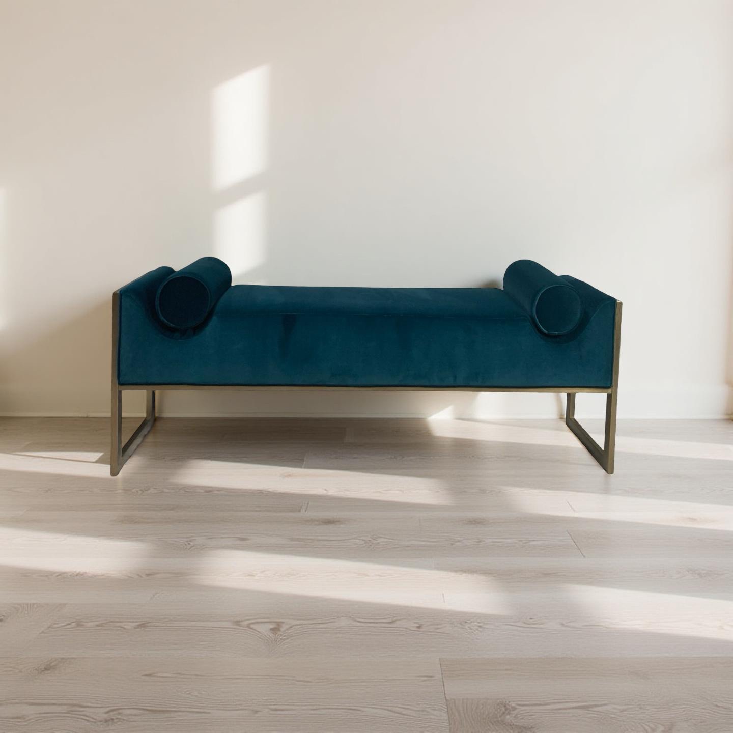 Dauphine is a divine divan in a bedroom or entryway. Set in a gorgeous Aged Modern Brass scaffold frame with inset scooped bolsters at either end. Available in a raft of stylish velvets, linens or your COM. S+E covets designer collaborations, not to mention welts, buttons, fringe and the like. Custom tailoring treatments are available.