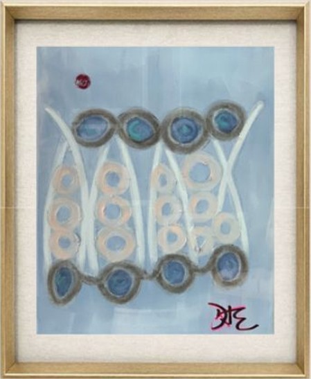 Softly atmospheric and quietly structured, Grey Dawn captures the stillness of early light through a refined interplay of form and tone. Vertical, vessel-like shapes rise in gentle rhythm, their elongated silhouettes connected by a sequence of circular elements that read like anchors or markers in time.