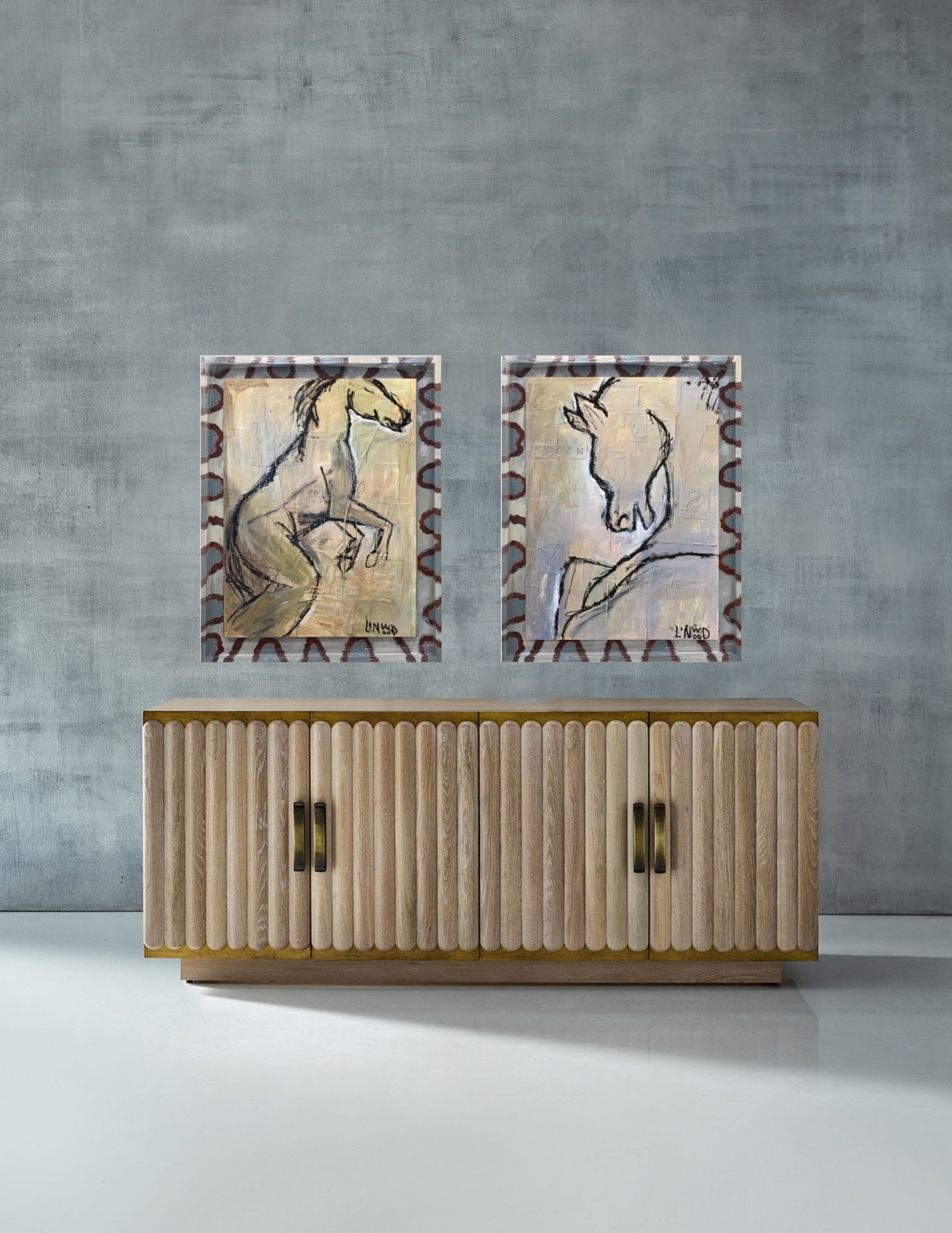 Horse LND03 balances precision and looseness: bold black lines suggest structure and anatomy, while their fluidity allows the form to feel in motion, as if captured mid-gesture. Graphic yet nuanced, Horse LND02 brings a sculptural energy to an interior—timeless in subject, modern in execution.