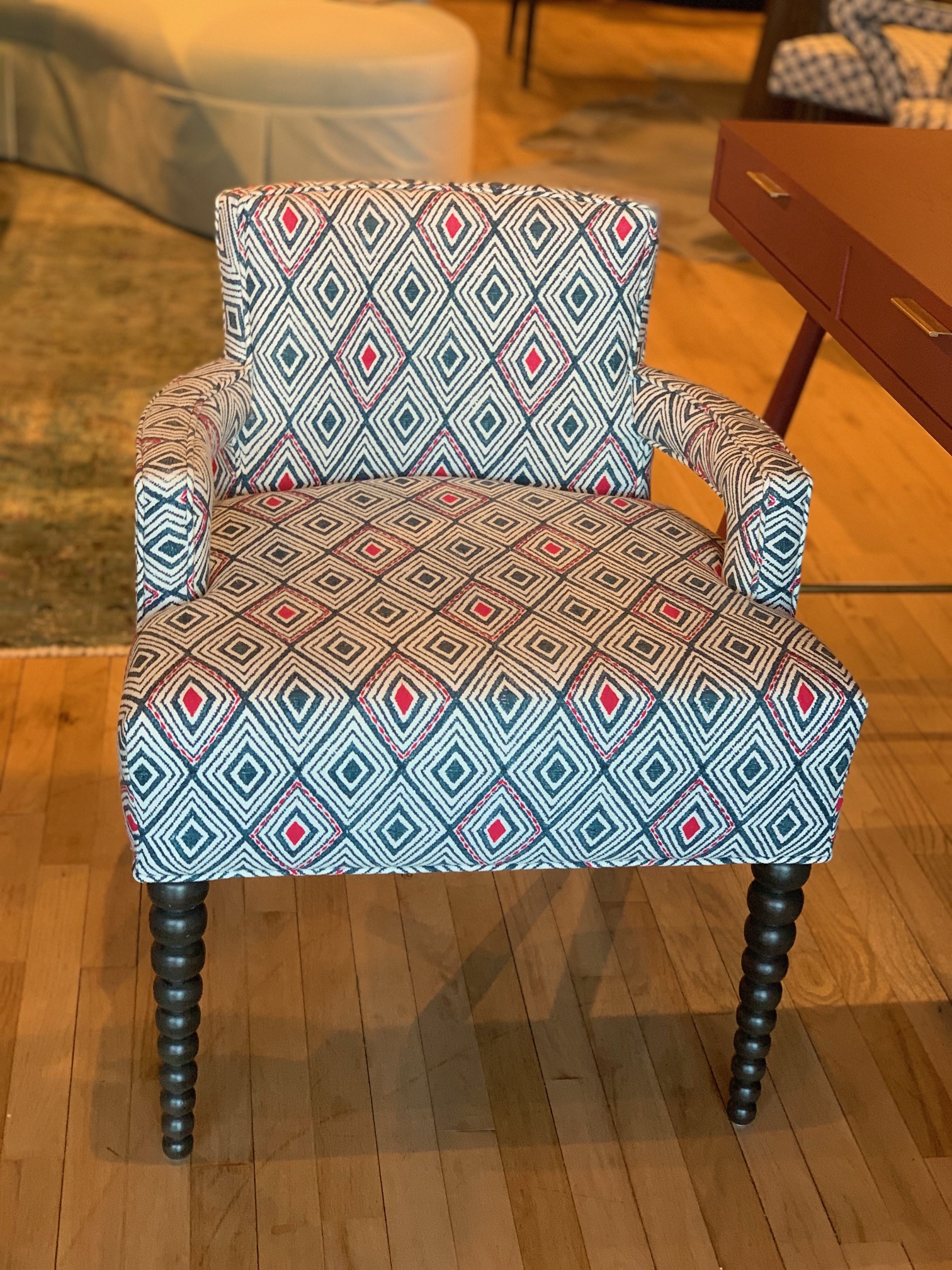 The Lilly is a piece under development—and already full of charm. This comfy little lady pairs playful detailing with a tailored silhouette, introducing a fresh take on classic form. Slender, dainty arms lend a light, feminine touch, while the newly introduced bobbin legs bring texture, rhythm, and a hint of heritage character to the design.