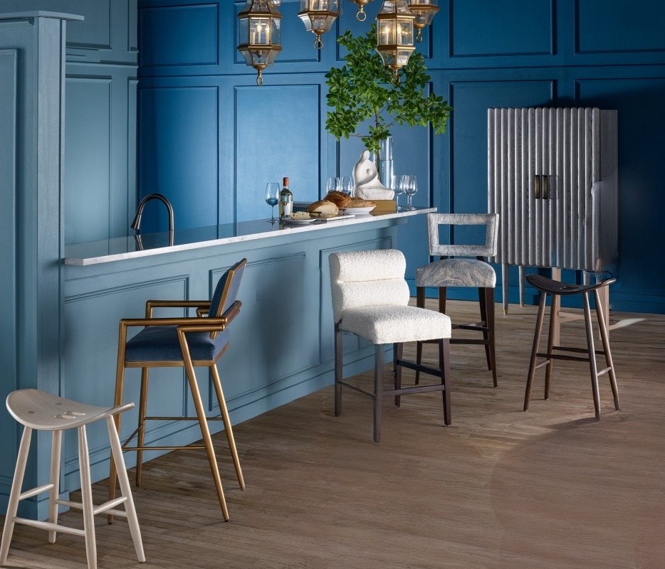 The Bramerton Stool has your lumbar covered—quite literally. The sculpted back, featuring channeled construction, provides subtle lumbar support, making the stool as inviting as it is visually distinctive. Thoughtfully designed for long, leisurely dinners and relaxed gatherings, Bramerton pairs tailored upholstery with a sturdy wood frame that lends the piece quiet architectural strength. Available in a range of wood finishes and offered with COM (Customer’s Own Material) upholstery, Alba gives designers the freedom to tailor both material and mood to the project’s palette.
