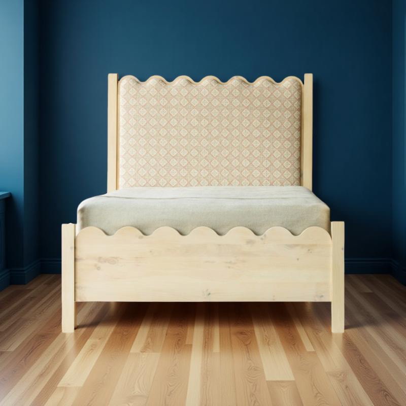 Designer favorite with a new look. The lovely Tilda bed is now available in solid Oak. Scalloped to perfection; solid-wood and bench made by hand expressly for you. Beach, mountain, city or countryside; dress it up or dress it down, she is timeless and modern at the same time. Canopy Version and Upholstered head/ footboard options available, Order in all S+E Bespoke finishes!
